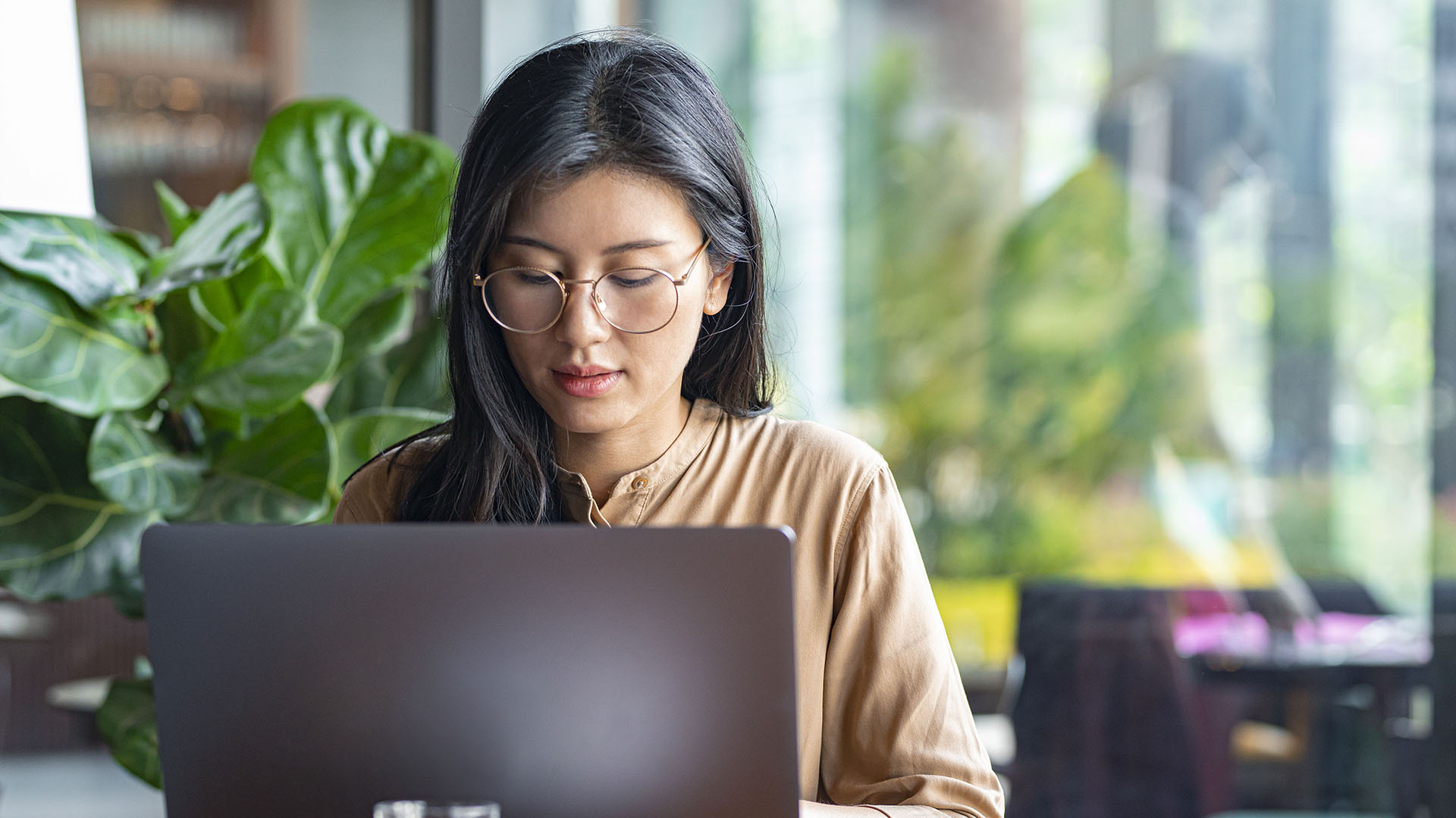 A lady using her laptop to reinvest returns for higher potential capital growth